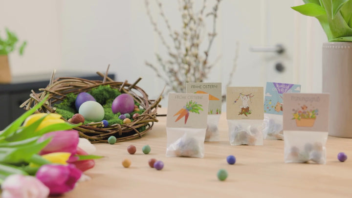 10 Easter gifts in one go: Contains 10 lovely Easter-themed bags (5 different designs), each filled with 5 colorful seed balls sprouting wildflowers. The ideal Easter gift for children, friends, and colleagues, and also a great addition to an Easter basket.