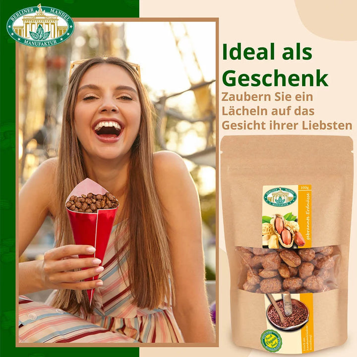 Für diesen beliebten Snack werden hochwertige Erdnüsse schonend mit Zucker karamellisiert – ganz ohne Farb- oder Konservierungsstoffe. So entsteht der typische, goldbraune Knuspermantel, der bei jedem Bissen herrlich knusprig ist und süß auf der Zunge zergeht.