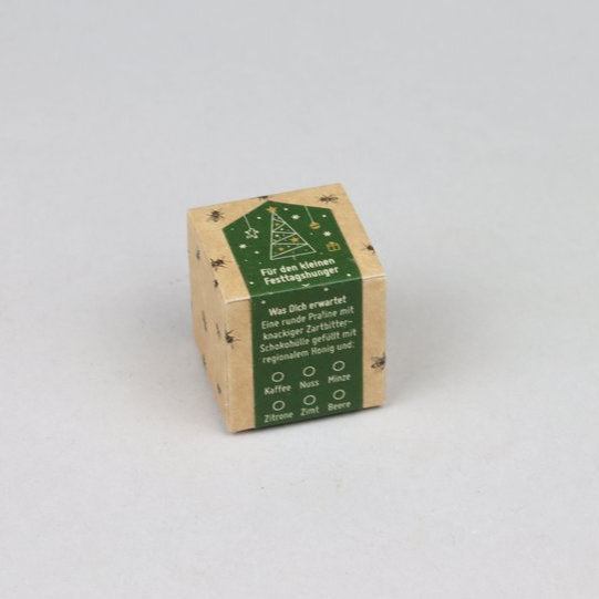 The chocolates are handmade locally. The sustainable packaging is plastic-free, and Herr Biene uses only grass-fed paper labels.