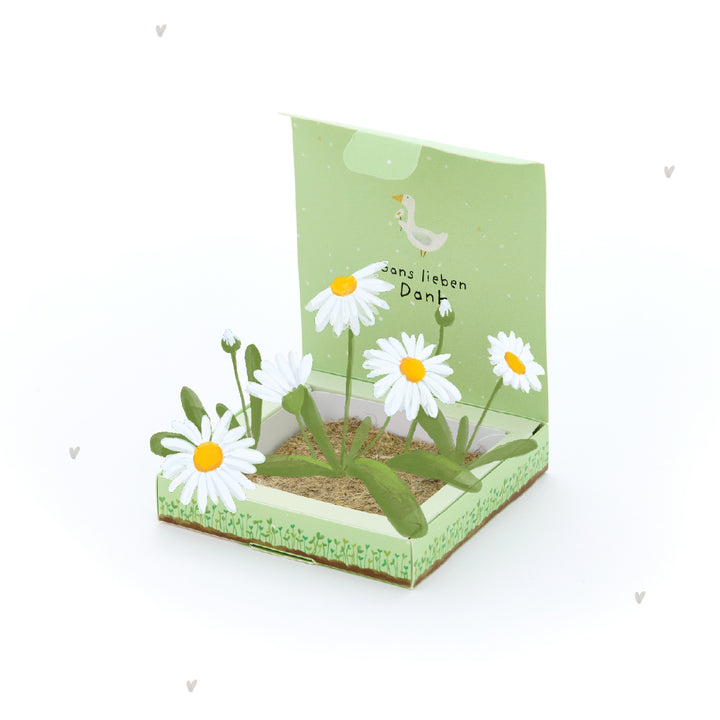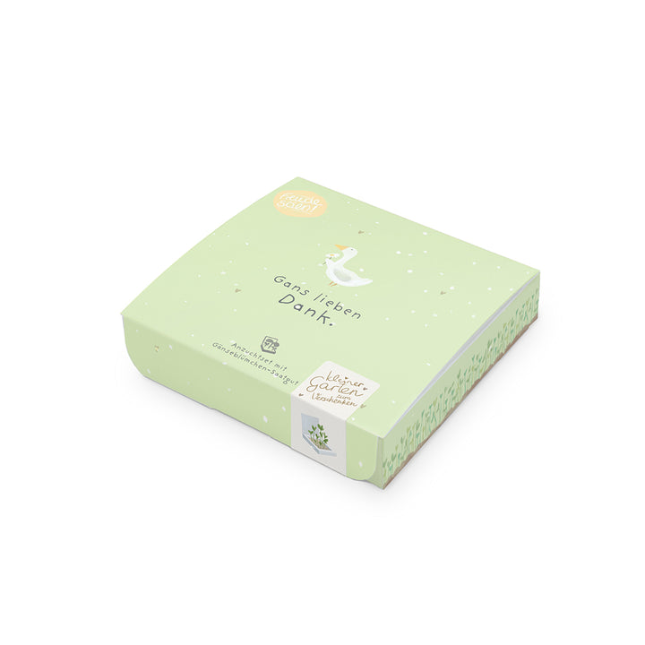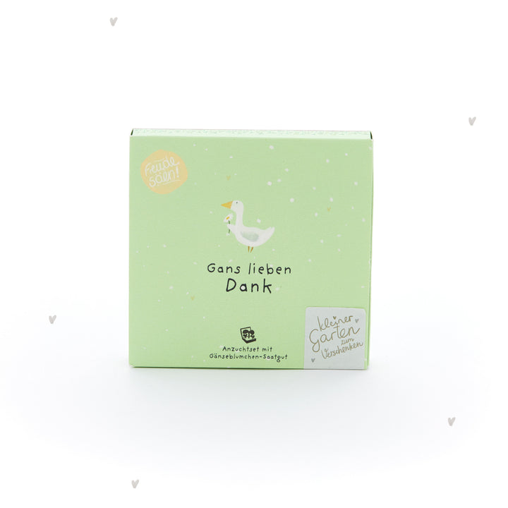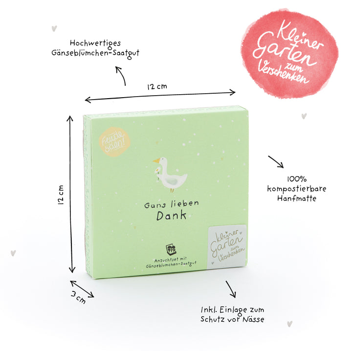 Ein Geschenk voller Wertschätzung: Ob als Abschiedsgeschenk für die Kita, als Dankeschön für die Hilfe beim Umzug oder einfach zwischendurch - dieses Set sagt auf liebevolle Weise "Gans lieben Dank". Aus der Saat wachsen zarte Gänseblümchen - als blühendes Symbol für all die kleinen und großen Dinge, für die man dankbar ist.