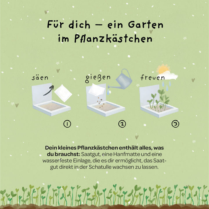 Wächst mit - wie echte Dankbarkeit: Wenn die Pflänzchen größer werden, kannst du sie samt Matte in einen größeren Topf oder ins Beet setzen. So bleibt aus einem liebevollen "Danke" eine blühende Erinnerung, die Tag für Tag Freude schenkt.
