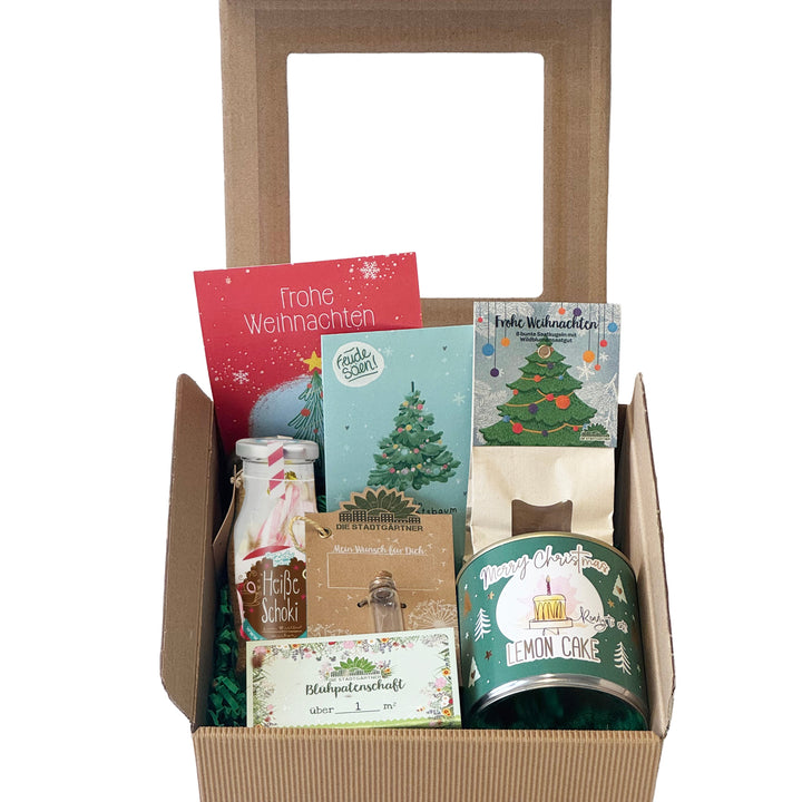 Beschenke deine Kunden und Mitarbeitenden mit dieser schönen Geschenkbox. Der hochwertige Karton ist gefüllt mit diesen Überraschungen: