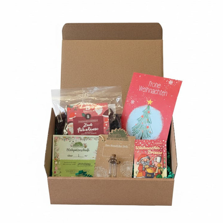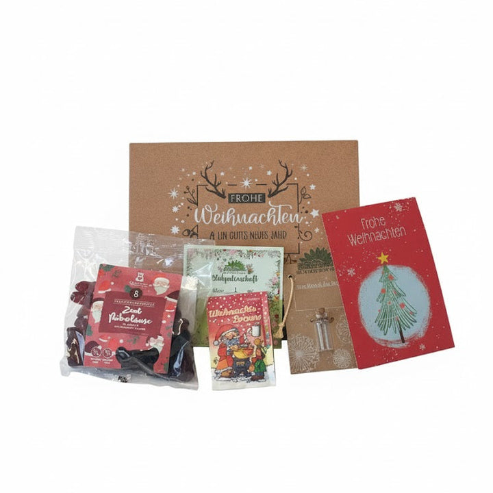 Beschenke deine Kunden und Mitarbeitenden mit dieser schönen Geschenkbox. Der hochwertige Karton ist gefüllt mit diesen Überraschungen: